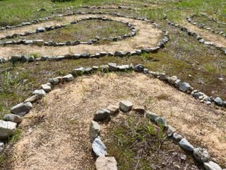 Labyrinth Although the design was made by walking through the space with yarn, this drawing by Lori Hayes Kershner is an approximation of the view from above.